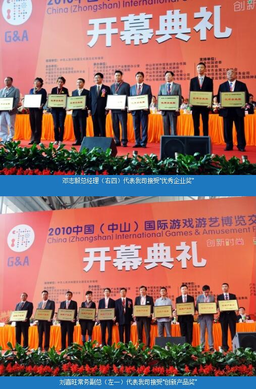為了突出2010中國(中山)國際游戲游藝博覽交易會(huì)“創(chuàng)新”主題,在廣東省文化廳的直接指導(dǎo)下,本屆游博會(huì)首次設(shè)立了“優(yōu)秀企業(yè)獎(jiǎng)”及“創(chuàng)新產(chǎn)品獎(jiǎng)”等行業(yè)大獎(jiǎng)。