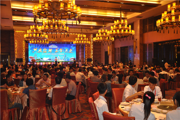 晚上市游協(xié)在金上濠舉行招待晚宴,延開百席,更邀請到IAAPA主席Mario先生參加。作為市游協(xié)會長,鄧志毅董事長發(fā)表了熱情洋溢的致辭,歡迎世界各國、全國各地的客商到中山洽談、合作,同時,他對中山游戲游藝產(chǎn)業(yè)充滿信心,表示本屆游博會較往屆帶來更多驚喜。隨后宴會開始,游樂業(yè)界共聚一堂,為本次游樂的盛宴舉杯共賀。