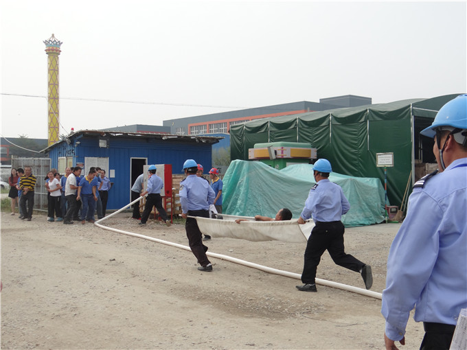 演練共計分三個科目進行:一是滅火器的使用;二是消防水帶接續(xù)的現(xiàn)場培訓(xùn);三是模擬火災(zāi)現(xiàn)場的撲救演習(xí)。演練前公司制定了2017年下半年消防演練方案,成立了現(xiàn)場指揮部,下設(shè)救火組、人員疏散組、物資搶救組、照明通訊組以及安全救護組。