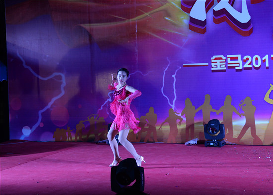 晚會在當(dāng)日18:30準(zhǔn)時開始,近300名金馬人有序齊聚臺下,一卸工作的疲累,放松精神,歡樂暢談,縱享小食。一開始是前期迎春文體系列活動的頒獎表彰環(huán)節(jié),籃球、羽毛球、桌球、乒乓球、越野、攀巖等各項(xiàng)活動獲獎代表分別從頒獎領(lǐng)導(dǎo)手中接過獎狀和獎金,喜悅之情溢于言表。隨后,文藝匯演正式開始,瞬時音樂響起,燈光閃爍,全場目光齊刷刷地射向舞臺。喜慶洋洋的“恭喜發(fā)財(cái)”率先登臺,來自機(jī)械車間的6名員工將濃濃的年味散播至現(xiàn)場每一個角落;開料車間創(chuàng)意策劃編排的“大王叫我來巡山”舞蹈完美融合生肖吉祥物寓意,打造出一個“眾猴拱雞”的趣味舞臺;來自玻璃鋼車間王曉玲的一首“映山紅”以其游刃有余的高聲調(diào)震撼全場;精益部的“ 鞋釘”小品雖僅2人登臺,卻憑借生動形象的人物塑造與演出征服了臺下評委與觀眾... ...匯演中場雖時有毛毛細(xì)雨拂起,但像雨像霧又像風(fēng)的感覺為演出現(xiàn)場平添了一絲韻味,增添了一份浪漫的氣息,整場表演更是可謂精彩紛呈、引人入勝。